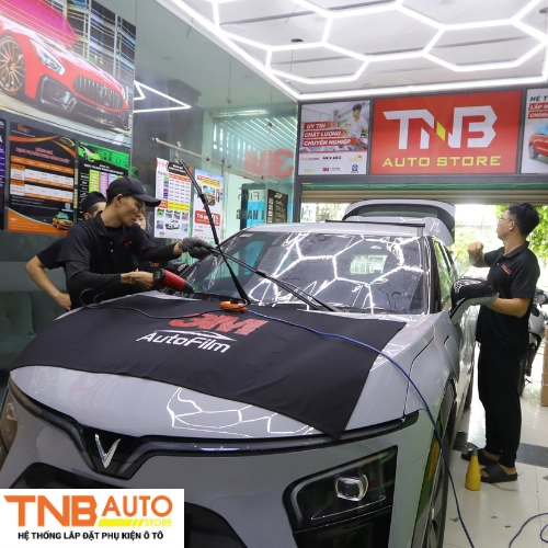Hệ thống TNB Auto là địa chỉ hàng đầu của nhiều chủ xe khi nâng cấp cấp xe ô tô, xe điện. Trong đó, nổi bật là dịch vụ dán phim cách nhiệt 3M chính hãng cho dòng xe VinFast VF7. Với đội ngũ kỹ thuật viên nhiều năm kinh nghiệm, am hiểu cấu trúc kính và hệ thống điện trên xe VF7 thì TNB Auto luôn mang đến chất lượng thi công chỉn chu, đúng chuẩn kỹ thuật và đảm bảo giữ nguyên bản xe.