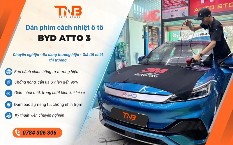 Hệ thống TNB Auto là địa chỉ chuyên thi công dán phim cách nhiệt BYD Atto 3 được nhiều chủ xe tin tưởng tại TP.HCM. Không chỉ chú trọng chất lượng phim chính hãng, TNB Auto đặc biệt tập trung vào kỹ thuật thi công chuẩn, an toàn cho xe điện, đi kèm chính sách bảo hành kỹ thuật trọn đời giúp khách hàng yên tâm sử dụng lâu dài.