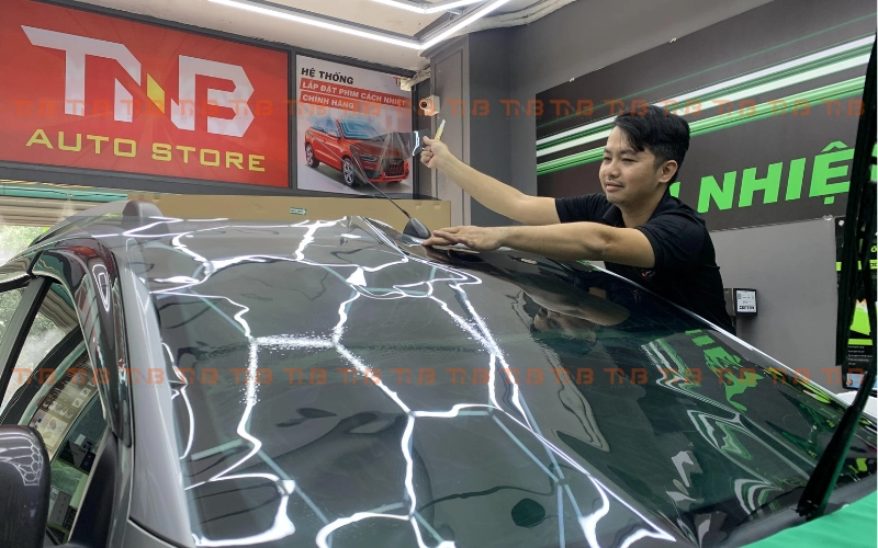Sau khi hoàn tất thi công, xe sẽ được kiểm tra lần cuối cùng để đảm bảo lớp phim đạt yêu cầu về chất lượng và thẩm mỹ. Nhân viên kỹ thuật sẽ hướng dẫn khách hàng cách chăm sóc phim trong thời gian đầu sau khi dán và bàn giao xe cùng phiếu bảo hành chính hãng. Khách hàng có thể yên tâm sử dụng với cam kết bảo hành rõ ràng và hậu mãi chu đáo từ TNB Auto.