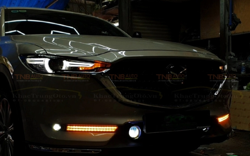 Tại TNB Auto, việc lắp đặt đèn bi gầm LED/bi-LED cho Mazda CX-8 được thực hiện theo quy trình tiêu chuẩn kỹ thuật cao, đảm bảo độ sáng tối ưu, an toàn điện tuyệt đối và phù hợp quy định đăng kiểm.